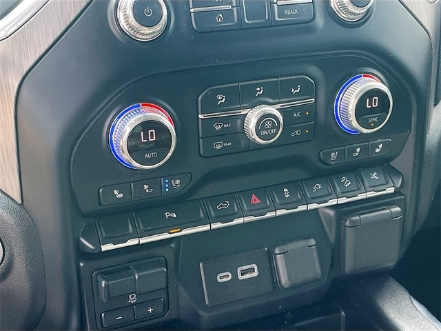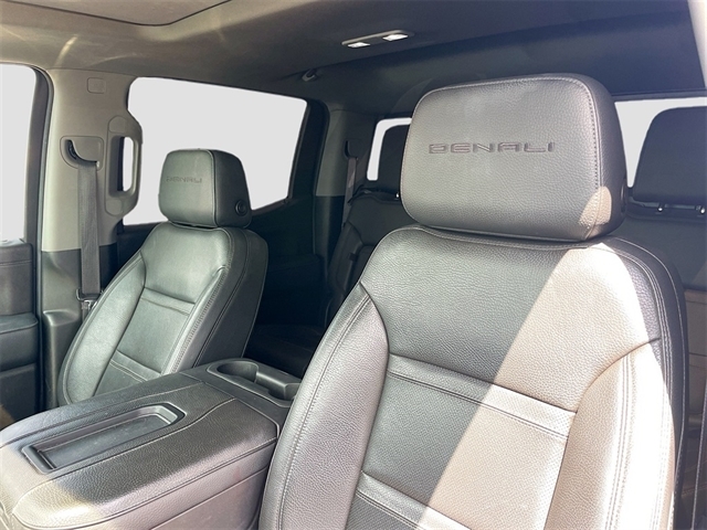 10-Speed Automatic, 4WD, Jet Black Leather, 10-Way Power Driver Seat Adjuster w/Lumbar, 10-Way Power Passenger Seat Adjuster w/Lumbar, 12-Volt Rear Auxiliary Power Outlet, 120-Volt Bed Mounted Power Outlet, 120-Volt Instrument Panel Power Outlet, 170 Amp Alternator, 2 USB Ports, 2 USB Ports (1st Row), 3.23 Rear Axle Ratio, 4-Wheel Disc Brakes, 4G LTE Wi-Fi Hotspot Capable, 7 Speakers, ABS brakes, Adaptive Ride Control Suspension, Adaptive suspension, Air Conditioning, Alloy wheels, AM/FM radio: SiriusXM with 360L, Apple CarPlay/Android Auto, Auto-dimming door mirrors, Auto-dimming Rear-View mirror, Auto-Locking Rear Differential, Automatic temperature control, Auxiliary External Transmission Oil Cooler, Brake assist, Bumpers: body-color, Chrome Recovery Hooks, Chrome Wheel To Wheel Assist Steps, Color-Keyed Carpeting Floor Covering, Compass, Deep-Tinted Glass, Delay-off headlights, Denali Premium Package, Driver Alert Package I, Driver door bin, Driver Memory, Driver vanity mirror, Dual front impact airbags, Dual front side impact airbags, Electric Rear-Window Defogger, Electrical Lock Control Steering Column, Electronic Stability Control, Floor-Mounted Center Console, Forge Perforated Leather-Appointed Seat Trim, Front anti-roll bar, Front Bucket Seats, Front Center Armrest, Front dual zone A/C, Front fog lights, Front License Plate Kit, Front reading lights, Front wheel independent suspension, Fully automatic headlights, Garage door transmitter, Genuine wood console insert, Genuine wood door panel insert, GMC Connected Access Capable, GMC MultiPro Power Steps, HD Rear Vision Camera, Heated door mirrors, Heated Driver & Front Outboard Passenger Seating, Heated front seats, Heated steering wheel, Heavy-Duty Air Filter, Hill Descent Control, Hitch Guidance, Hitch Guidance w/Hitch View, Illuminated entry, In-Vehicle Trailering App, Integrated Trailer Brake Controller, Keyless Open & Start, Lane Change Alert w/Side Blind Zone Alert, LED Cargo Area Lighting, Low tire pressure warning, Manual Tilt-Wheel & Telescoping Steering Column, Memory seat, Navigation System, Not Equipped w/Automatic Stop/Start, Not Equipped w/HD Radio, Not Equipped w/Heated 2nd Row Outboard Seats, Occupant sensing airbag, OnStar & GMC Connected Services Capable, Outside temperature display, Overhead airbag, Overhead console, Panic alarm, Passenger door bin, Passenger vanity mirror, Power Door Locks, Power door mirrors, Power driver seat, Power Front Passenger Windows w/Express Up/Down, Power Front Windows w/Driver Express Up/Down, Power passenger seat, Power Rear Windows w/Express Down, Power Sliding Rear Window w/Rear Defogger, Power steering, Power Sunroof, Power windows, Preferred Equipment Group 5SA, Premium audio system: GMC Infotainment System, Premium Bose 7-Speaker Sound System, ProGrade Trailering System, Radio data system, Radio: Premium GMC Infotainment Sys w/Navigation, Rear Cross Traffic Alert, Rear Dual USB Charging-Only Ports, Rear reading lights, Rear seat center armrest, Rear step bumper, Rear Wheelhouse Liners, Rear window defroster, Remote keyless entry, Remote Vehicle Starter System, Safety Alert Seat, Security system, Signature Denali Grille, SiriusXM w/360L, Speed control, Speed-sensing steering, Split folding rear seat, Spray-On Pickup Bed Liner w/Denali Logo, Steering Wheel Audio Controls, Steering wheel mounted audio controls, Tachometer, Telescoping steering wheel, Theft Deterrent System (Unauthorized Entry), Tilt steering wheel, Traction control, Trailering Package, Trip computer, Ultrasonic Front & Rear Park Assist, Universal Home Remote, Variably intermittent wipers, Ventilated Driver & Front Passenger Seats, Ventilated front seats, Voltmeter,