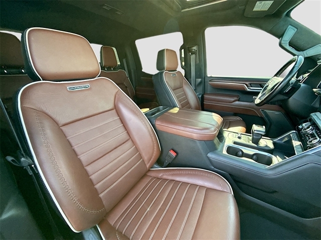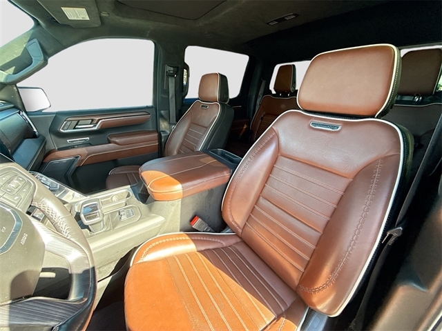 10-Speed Automatic, 4WD, Alpine Umber Leather, 12 Speakers, 120-Volt Bed Mounted Power Outlet, 120-Volt Instrument Panel Power Outlet, 16-Way Power Driver Seat Adjuster w/Lumbar, 16-Way Power Passenger Seat Adjuster w/Lumbar, 170 Amp Alternator, 2 Charge/Data USB Ports Inside Center Console, 2 Type-C Charge-Only Rear USB Ports, 2 USB Ports, 3.23 Rear Axle Ratio, 4-Wheel Disc Brakes, ABS brakes, Adaptive suspension, Air Conditioning, Alloy wheels, AM/FM radio, Apple CarPlay/Android Auto, Auto High-beam Headlights, Auto-dimming door mirrors, Auto-dimming Rear-View mirror, Auto-Locking Rear Differential, Automatic Emergency Braking, Automatic temperature control, Bed View Camera, Bose Premium Series w/12-Speaker System, Brake assist, Buckle to Drive, Bumpers: body-color, Chrome Recovery Hooks, Color-Keyed Carpeting Floor Covering, Compass, Deep-Tinted Glass, Delay-off headlights, Denali Premium Suspension w/Adaptive Ride Control, Driver door bin, Driver Memory, Driver vanity mirror, Dual front impact airbags, Dual front side impact airbags, Electric Rear-Window Defogger, Electrical Steering Column Lock, Electronic Stability Control, Emergency communication system: OnStar and GMC connected services capable, Floor-Mounted Center Console, Following Distance Indicator, Forward Collision Alert, Front anti-roll bar, Front Bucket Seats, Front Center Armrest, Front dual zone A/C, Front fog lights, Front License Plate Kit, Front Pedestrian Braking, Front Rainsensing Wipers, Front reading lights, Front wheel independent suspension, Full Grain Leather Seat Trim, Fully automatic headlights, Garage door transmitter, Genuine wood console insert, Genuine wood dashboard insert, Genuine wood door panel insert, GMC Connected Access Capable, GMC MultiPro Tailgate Step Lights (LPO), HD Surround Vision, Heads-Up Display, Heated 2nd Row Outboard Seats, Heated door mirrors, Heated Driver & Front Outboard Passenger Seating, Heated front seats, Heated rear seats, Heated steering wheel, Heavy-Duty Air Filter, Hill Descent Control, Hitch Guidance, Hitch Guidance w/Hitch View, Illuminated entry, In-Vehicle Trailering App, Integrated Trailer Brake Controller, IntelliBeam Automatic High Beam On/Off, Keyless Open & Start, Lane Keep Assist w/Lane Departure Warning, LED Cargo Area Lighting, Low tire pressure warning, Memory seat, Multicolor 15`` Diagonal Head-Up Display, MultiPro Audio System by Kicker (LPO), Navigation System, Not Equipped w/Steering Column Lock, Occupant sensing airbag, OnStar & GMC Connected Services Capable, Outside temperature display, Overhead airbag, Overhead console, Panic alarm, Passenger door bin, Passenger vanity mirror, Perimeter Lighting, Power Door Locks, Power door mirrors, Power driver seat, Power Front Passenger Windows w/Express Up/Down, Power Front Windows w/Driver Express Up/Down, Power moonroof, Power passenger seat, Power Rake & Telescoping Steering Column, Power Rear Windows w/Express Down, Power Sliding Rear Window w/Rear Defogger, Power steering, Power Sunroof, Power windows, Preferred Equipment Group 5SB, Premium audio system: GMC Infotainment System, Push Button Start, Radio data system, Radio: Premium GMC Infotainment Audio System, Rain sensing wipers, Rear Cross Traffic Braking, Rear Pedestrian Detection, Rear reading lights, Rear seat center armrest, Rear step bumper, Rear Wheelhouse Liners, Rear window defroster, Remote keyless entry, Remote Vehicle Starter System, Safety Alert Seat, Security system, SiriusXM w/360L, Speed control, Speed-sensing steering, Split folding rear seat, Spray-On Pickup Bed Liner w/Denali Logo, Steering Wheel Audio Controls, Steering wheel mounted audio controls, Tachometer, Telescoping