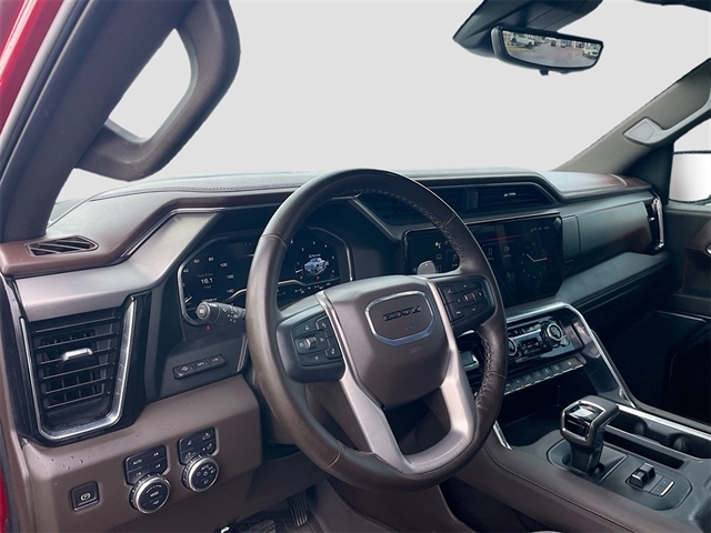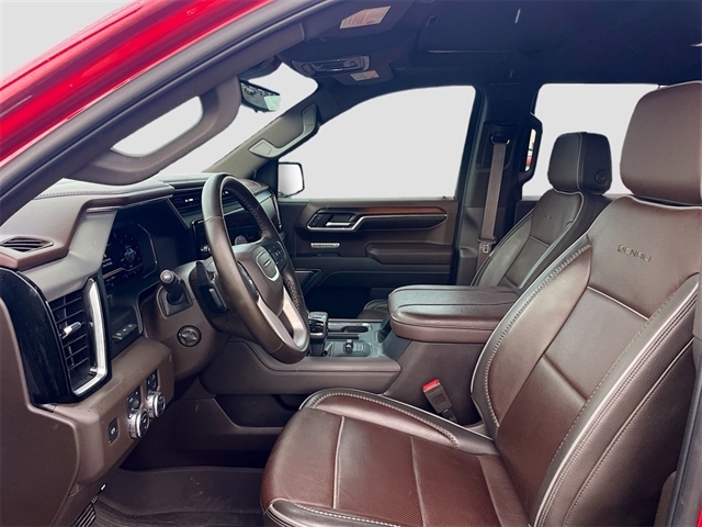 10-Speed Automatic, 4WD, Atmosphere/Brownstone Leather, 12-Way Power Driver Seat Adjuster w/Lumbar, 12-Way Power Passenger Seat Adjuster w/Lumbar, 120-Volt Bed Mounted Power Outlet, 120-Volt Interior Power Outlet, 170 Amp Alternator, 2 Charge/Data USB Ports Inside Center Console, 2 Type-C Charge-Only Rear USB Ports, 2 USB Ports, 3.23 Rear Axle Ratio, 4-Wheel Disc Brakes, 7 Speakers, ABS brakes, Adaptive suspension, Air Conditioning, Alloy wheels, AM/FM radio: SiriusXM with 360L, Apple CarPlay/Android Auto, Auto High-beam Headlights, Auto-dimming door mirrors, Auto-dimming Rear-View mirror, Auto-Locking Rear Differential, Automatic temperature control, Auxiliary External Transmission Oil Cooler, Bed View Camera, Brake assist, Buckle to Drive, Bumpers: body-color, Chrome Header w/Signature Denali Chrome Grille, Chrome Recovery Hooks, Chrome Wheel To Wheel Assist Steps, Color-Keyed Carpeting Floor Covering, Compass, Deep-Tinted Glass, Delay-off headlights, Denali Premium Suspension w/Adaptive Ride Control, Denali Reserve Package, Driver door bin, Driver Memory, Driver vanity mirror, Dual Active Exhaust, Dual front impact airbags, Dual front side impact airbags, Electric Rear-Window Defogger, Electronic Stability Control, Emergency communication system: OnStar and GMC connected services capable, Enhanced Automatic Emergency Braking, Floor-Mounted Center Console, Following Distance Indicator, Forge Perforated Leather Seat Trim, Forward Collision Alert, Front anti-roll bar, Front Bucket Seats, Front Center Armrest, Front dual zone A/C, Front fog lights, Front License Plate Kit, Front Pedestrian Braking, Front Rain-Sensing Wipers, Front reading lights, Front wheel independent suspension, Fully automatic headlights, Garage door transmitter, Genuine wood console insert, Genuine wood dashboard insert, Genuine wood door panel insert, GMC Connected Access Capable, GMC MultiPro Power Steps, HD Surround Vision, Heated 2nd Row Outboard Seats, Heated door mirrors, Heated Driver & Front Outboard Passenger Seating, Heated front seats, Heated rear seats, Heated steering wheel, Heavy-Duty Air Filter, Hill Descent Control, Hitch Guidance, Hitch View, Illuminated entry, In-Vehicle Trailering System App, Integrated Trailer Brake Controller, IntelliBeam Automatic High Beam On/Off, Keyless Open & Start, Lane Keep Assist w/Lane Departure Warning, LED Cargo Area Lighting, Low tire pressure warning, Memory seat, Multicolor 15`` Diagonal Head-Up Display, Navigation System, Occupant sensing airbag, OnStar & GMC Connected Services Capable, Outside temperature display, Overhead airbag, Overhead console, Panic alarm, Passenger door bin, Passenger vanity mirror, Perimeter Lighting, Power Door Locks, Power door mirrors, Power driver seat, Power Front Passenger Windows w/Express Up/Down, Power Front Windows w/Driver Express Up/Down, Power passenger seat, Power Rake & Telescoping Steering Column, Power Rear Windows w/Express Down, Power Sliding Rear Window w/Rear Defogger, Power steering, Power Sunroof, Power windows, Preferred Equipment Group 5SA, Premium audio system: GMC Infotainment System, Premium Bose 7-Speaker Sound System, Push Button Start, Radio data system, Radio: Premium GMC Infotainment Audio System, Rain sensing wipers, Rear Camera Mirror, Rear Cross Traffic Braking, Rear Pedestrian Detection, Rear reading lights, Rear seat center armrest, Rear step bumper, Rear Wheelhouse Liners, Rear window defroster, Remote keyless entry, Remote Vehicle Starter System, Safety Alert Seat, Security system, SiriusXM w/360L, Speed control, Speed-sensing steering, Split folding rear seat, Spray-On Pickup Bedliner w/Denali Logo, Steering Wheel Audio Controls, Steering whe