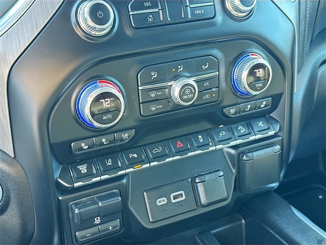 10-Speed Automatic, 4WD, Jet Black Leather, 10-Way Power Driver Seat Adjuster w/Lumbar, 10-Way Power Passenger Seat Adjuster w/Lumbar, 12-Volt Rear Auxiliary Power Outlet, 120-Volt Bed Mounted Power Outlet, 120-Volt Instrument Panel Power Outlet, 2 USB Ports, 2 USB Ports (1st Row), 2-Speed Active Transfer Case, 220 Amps Alternator, 2nd Row Dual USB Charge-Only Ports, 4-Wheel Disc Brakes, 6`` Rectangular Chromed Tubular Assist Steps, 7 Speakers, ABS brakes, Air Conditioning, Alloy wheels, AM/FM radio: SiriusXM with 360L, Apple CarPlay/Android Auto, Auto High-beam Headlights, Auto-dimming door mirrors, Auto-dimming Rear-View mirror, Automatic Emergency Braking, Automatic temperature control, Bed View Camera w/2 Trailer Camera Provisions, Bose Premium 7 Speaker Sound System, Brake assist, Bumpers: body-color, Compass, Compass Located In Instrument Cluster, Console-Mounted Safe (LPO), Deep-Tinted Glass, Delay-off headlights, Denali Black Diamond Edition, Denali Ultimate Package, Driver Alert Package I, Driver Alert Package II, Driver door bin, Driver Memory, Driver vanity mirror, Dual front impact airbags, Dual front side impact airbags, Electric Rear-Window Defogger, Electrical Lock Control Steering Column, Electronic Stability Control, Emergency communication system: OnStar and GMC connected services capable, Engine Block Heater, Exhaust Brake, Exterior Parking Camera Rear, Floor-Mounted Center Console, Following Distance Indicator, Forge Perforated Leather-Appointed Front Seat Trim, Forward Collision Alert, Front anti-roll bar, Front Bucket Seats, Front Center Armrest, Front Chrome Recovery Hooks, Front dual zone A/C, Front fog lights, Front License Plate Kit, Front Prem Floor Liners w/Removable Carpet Insert, Front reading lights, Front wheel independent suspension, Fully automatic headlights, Garage door transmitter, Genuine wood console insert, Genuine wood door panel insert, GMC Connected Access Capable, GMC MultiPro Tailgate Step Lights (LPO), Gooseneck/5th Wheel Prep Package, HD Surround Vision w/2 Trailer View Camera Provisions, Heated & Ventilated Front Bucket Seats, Heated 2nd Row Outboard Seats, Heated door mirrors, Heated Driver & Front Outboard Passenger Seats, Heated front seats, Heated rear seats, Heated steering wheel, Heavy-Duty 80 Amp Battery, High Idle Switch, Hill Descent Control, Hitch Guidance w/Hitch View, Hitch Package (LPO), Illuminated entry, In-Vehicle Trailering System App, Inside Rearview Auto-Dimming Rear Camera Mirror, Integrated Trailer Brake Controller, IntelliBeam Automatic High Beam On/Off, Keyless Open & Start, Lane Change Alert w/Side Blind Zone Alert, Lane Departure Warning System, LED Cargo Area Lighting, LED Smoked Amber Roof Marker Lamps, Low tire pressure warning, Manual Tilt-Wheel/Telescoping Steering Column, Memory seat, Multicolor 15`` Diagonal Head-Up Display, MultiPro Audio System by Kicker (LPO), Navigation System, Not Equipped w/Hood Insulator, Occupant sensing airbag, Off-Road Suspension, OnStar & GMC Connected Services Capable, Outside temperature display, Overhead airbag, Overhead console, Panic alarm, Passenger door bin, Passenger vanity mirror, Pickup Box, Polished Exhaust Tip, Power Door Locks, Power door mirrors, Power driver seat, Power Front Passenger Windows w/Express Up/Down, Power passenger seat, Power Rear Windows w/Express Down, Power Sliding Rear Window w/Defogger, Power steering, Power Sunroof, Power windows, Power Windows w/Driver Express Up/Down, Power-Retractable Assist Steps, Preferred Equipment Group 5SA, Premium audio system: Premium GMC Infotainment System, Radio: AM/FM w/Prem GMC Infotainment System & Navi, Rear Cross Traffic Alert, Rear Prem Floor Liners w/