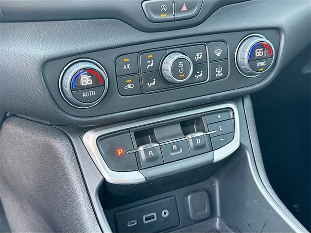 2 USB Data Ports w/Auxiliary Input Jack, 3.47 Final Drive Axle Ratio, 4-Way Manual Driver`s Seat, 4-Way Manual Front Passenger Seat, 4-Wheel Disc Brakes, 4.2`` Multi-Color Driver Information Screen, 6 Speakers, 6-Speaker Audio System Feature, 8-Way Power Driver Seat Adjuster, ABS brakes, Air Conditioning, Alloy wheels, AM/FM radio: SiriusXM, Auto High-beam Headlights, Auto-dimming Rear-View mirror, Automatic temperature control, Bluetooth® For Phone, Brake assist, Bumpers: body-color, Compass, Delay-off headlights, Driver & Front Passenger Heated Seats, Driver Convenience Package, Driver door bin, Driver vanity mirror, Dual front impact airbags, Dual front side impact airbags, Dual-Zone Automatic Climate Control, Electronic Stability Control, Emergency communication system: OnStar and GMC connected services capable, Four wheel independent suspension, Front anti-roll bar, Front Bucket Seats, Front Center Armrest, Front reading lights, Fully automatic headlights, Heated door mirrors, Illuminated entry, License Plate Front Mounting Package, Low tire pressure warning, Occupant sensing airbag, Outside temperature display, Overhead airbag, Overhead console, Panic alarm, Passenger door bin, Passenger vanity mirror, Power door mirrors, Power Driver Lumbar Control, Power Programmable Rear Liftgate, Power steering, Power windows, Preferred Equipment Group 3SA, Premium Cloth Seat Trim, Radio data system, Radio: GMC Infotainment Audio System w/7`` Display, Rear anti-roll bar, Rear seat center armrest, Rear window defroster, Rear window wiper, Remote keyless entry, Remote Start, Roof-Mounted Luggage Rack Side Rails, Security system, SiriusXM, Speed control, Speed-sensing steering, Split folding rear seat, Spoiler, Steering wheel mounted audio controls, Tachometer, Telescoping steering wheel, Tilt steering wheel, Traction control, Trip computer, Variably intermittent wipers, Wheels: 17`` x 7`` Silver Painted Aluminum, Wireless Apple CarPlay/Wireless Android Auto.