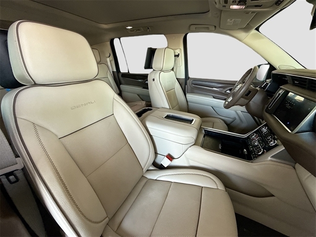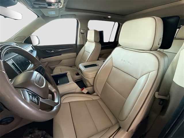 12-Way Power Seat Adjusters, 14 Speakers, 15`` Diagonal Multi-Color Head-Up Display, 2 Presets For Outside Rearview Mirrors, 3.23 Rear Axle Ratio, 3rd Row 60/40 Power-Folding Split-Bench Seat, 3rd row seats: split-bench, 4-Wheel Disc Brakes, ABS brakes, Adaptive Cruise Control, Adaptive suspension, Advanced Security Package, Advanced Technology Package, Air Conditioning, Alloy wheels, AM/FM radio: SiriusXM with 360L, AM/FM Stereo, Apple CarPlay/Android Auto, Auto High-beam Headlights, Auto-dimming door mirrors, Auto-dimming Rear-View mirror, Auto-leveling suspension, Automatic Emergency Braking, Automatic temperature control, Bodyside moldings, Bose 14-Speaker Surround w/CenterPoint, Brake assist, Bright Front & Rear Door Sill Plates, Bumpers: body-color, Chrome Door Handles w/Body-Color Strip, Compass, Delay-off headlights, Driver door bin, Driver vanity mirror, Dual Exhaust System, Dual front impact airbags, Dual front side impact airbags, Dual-Pane Panoramic Power Sunroof, Electronic Stability Control, Emergency communication system: OnStar and GMC connected services capable, Enhanced Automatic Emergency Braking, Enhanced Automatic Parking Assist, Extra Capacity Cooling System, Floor Console, Following Distance Indicator, Forward Collision Alert, Four wheel independent suspension, Front & Rear Park Assist, Front anti-roll bar, Front Bucket Seats, Front Center Armrest, Front dual zone A/C, Front fog lights, Front Pedestrian Braking, Front reading lights, Fully automatic headlights, Galvano Bodyside Moldings, Garage door transmitter, Glass Breakage Sensor, Hands-Free Power Programmable Rear Liftgate, HD Surround Vision, Heads-Up Display, Heated 2nd Row Outboard Position Seats, Heated door mirrors, Heated Driver & Front Passenger Seats, Heated front seats, Heated rear seats, Heated Steering Wheel, Heated steering wheel, Hitch View, Illuminated entry, Inside Rear-View Auto-Dimming Mirror, Inside Rearview Auto-Dimming Rear Camera Mirror, Integrated Trailer Brake Controller, IntelliBeam Automatic High Beam On/Off, Lane Change Alert w/Side Blind Zone Alert, Lane Keep Assist w/Lane Departure Warning, License Plate Front Mounting Package, Low tire pressure warning, Magnetic Ride Control Suspension, Max Trailering Package, Memory seat, Navigation System, Occupant sensing airbag, Outside Heated Power-Adjustable Mirrors, Outside temperature display, Overhead airbag, Overhead console, Panic alarm, Passenger door bin, Passenger vanity mirror, Perforated Heated & Ventilated Dr & Frt Pass Seats, Perforated Leather Seating Surfaces, Power door mirrors, Power driver seat, Power Liftgate, Power passenger seat, Power Release 2nd Row Bucket Seats, Power steering, Power Tilt & Telescopic Steering Column, Power windows, Preferred Equipment Group 5SA, Rain sensing wipers, Rear air conditioning, Rear anti-roll bar, Rear Camera Mirror Washer, Rear Cross Traffic Alert, Rear Pedestrian Alert, Rear reading lights, Rear Seat Media System, Rear window defroster, Rear window wiper, Remote keyless entry, Reverse Automatic Braking, Roof rack: rails only, Safety Alert Seat, Security system, SiriusXM w/360L, Smart Trailer Integration Indicator, Speed control, Speed-sensing steering, Split folding rear seat, Spoiler, Steering wheel memory, Steering wheel mounted audio controls, Super Cruise, Tachometer, Telescoping steering wheel, Theft-Deterrent Alarm System, Tilt steering wheel, Traction control, Trailer Side Blind Zone Alert, Trip computer, Turn signal indicator mirrors, Universal Home Remote, Variably intermittent wipers, Vehicle Inclination Sensor, Vehicle Interior Movement Sensor, Ventilated front seats, Voltmeter, Wheel Locks (Set of 4) (LPO),
