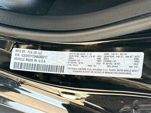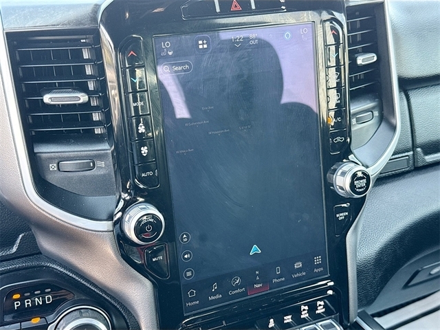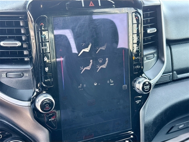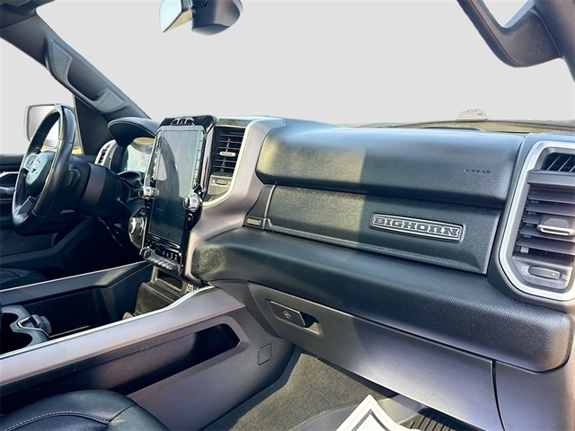115V Auxiliary Power Outlet, 115V Auxiliary Rear Power Outlet, 12`` Touchscreen Display, 2nd Row In Floor Storage Bins, 3 Rear Seat Head Restraints, 3.21 Rear Axle Ratio, 33 Gallon Fuel Tank, 4 Way Front Headrests, 4-Wheel Disc Brakes, 400W Inverter, 48V Belt Starter Generator, 4G LTE Wi-Fi Hot Spot, 6 Speakers, 8.4`` Touchscreen Display, 9 Amplified Speakers w/Subwoofer, ABS brakes, Air Conditioning, Air Conditioning ATC w/Dual Zone Control, All R1 High Radios, All Radio Equipped Vehicles, Alloy wheels, AM/FM radio, Anti-Spin Differential Rear Axle, Apple CarPlay, Auto-Dimming Exterior Driver Mirror, Auto-Dimming Rear-View Mirror, Big Horn Badge, Big Horn Level B Equipment Group (DISC), Black Exterior Mirrors, Black Exterior Truck Badging, Black Headlamp Bezels, Black Interior Accents, Black Premium Power Mirrors (GUL), Bluetooth Handsfree Phone & Audio, Body Color Front Bumper, Body Color Rear Bumper w/Step Pads, Brake assist, Bucket Seats, Bumpers: chrome, Class IV Receiver Hitch, Cloth Bench Seat, Cluster 7.0`` TFT Color Display, Compass, Connected Travel & Traffic Services, Connectivity - US/Canada, Convex Wide-Angle Mirror Insert, Delay-off headlights, Delete LED Lamp - Floor Console Bin, Deluxe Cloth Bucket Seats, Disassociated Touchscreen Display, Dome Dual LED Reading Lamp, Driver door bin, Dual Exhaust w/Black Tips, Dual front impact airbags, Dual front side impact airbags, Dual-Pane Panoramic Sunroof, Electronic Stability Control, Emergency communication system: SiriusXM Guardian, Exterior Mirrors Courtesy Lamps, Exterior Mirrors w/Supplemental Signals, Foam Bottle Insert (Door Trim Panel), For Details, Visit DriveUconnect.com, For More Info, Call 800-643-2112, Front anti-roll bar, Front Center Armrest w/Storage, Front fog lights, Front License Plate Bracket, Front reading lights, Front Seat Back Map Pockets, Front wheel independent suspension, Full Length Floor Console, Fully automatic headlights, Global Telematics Box Module (TBM), Glove Box Lamp, Google Android Auto, GPS Antenna Input, GPS Navigation, HD Radio, Heated door mirrors, Heated Front Seats, Heated Steering Wheel, Heavy-Duty Engine Cooling, Illuminated entry, Integrated Center Stack Radio, Integrated Voice Command w/Bluetooth, Leather steering wheel, LED Footwell Lighting, Low tire pressure warning, Manual Adjust 4-Way Front Passenger Seat, Media Hub w/2 Charge Only USBs, MOPAR Front & Rear Rubber Floor Mats, Night Edition (DISC), Occupant sensing airbag, Outside temperature display, Overhead airbag, Overhead console, Overhead LED Lamps, Panic alarm, ParkSense Front/Rear Park Assist w/Stop, ParkView Rear Back-Up Camera, Passenger door bin, Passenger vanity mirror, Power 2-Way Driver Lumbar Adjust, Power 8-Way Driver Seat, Power Adjustable Pedals, Power door mirrors, Power steering, Power windows, Premium Overhead Console, Quick Order Package 25Z Big Horn, Radio data system, Radio: Uconnect 3 w/5`` Display, Radio: Uconnect 5 Nav w/12.0`` Display, Radio: Uconnect 5 W w/8.4`` Display, Rear 60/40 Folding Seat, Rear anti-roll bar, Rear Center Armrest, Rear Dome w/On/Off Switch Lamp, Rear Power Sliding Window, Rear seat center armrest, Rear step bumper, Rear Underseat Compartment Storage (DISC), Rear Wheelhouse Liners, Rear Window Defroster, Remote keyless entry, Remote Start System, Security Alarm, SiriusXM Radio Service, SiriusXM Satellite Radio, SiriusXM w/360L, Speed control, Split folding rear seat, Steering wheel mounted audio controls, Sun Visors w/Illuminated Vanity Mirrors, Tachometer, Telescoping steering wheel, Tilt steering wheel, Traction control, Trailer Brake Control, Trip computer, Universal Garage Door Opener, USB Host Flip, Variably intermitt